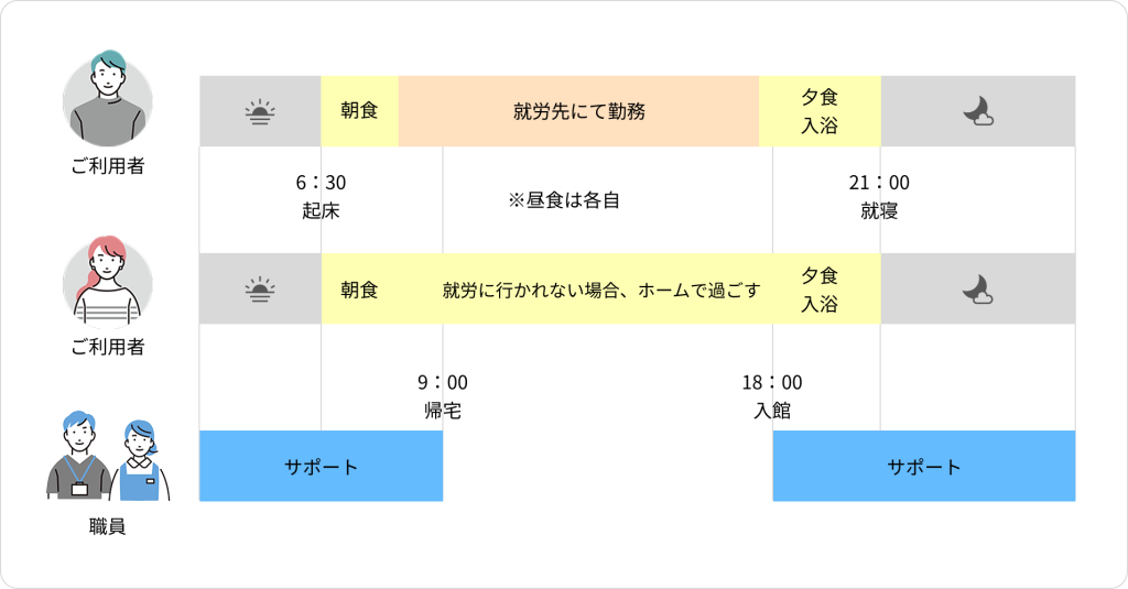 安心できる環境と専門家のサポートで日常生活を支援し、地域での自立を目指します。